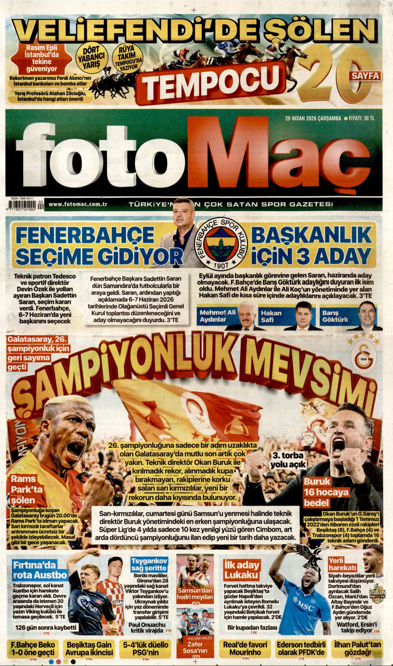 FOTOMAÇ Gazetesi 29 Nisan 2026, Çarşamba Günü Manşeti